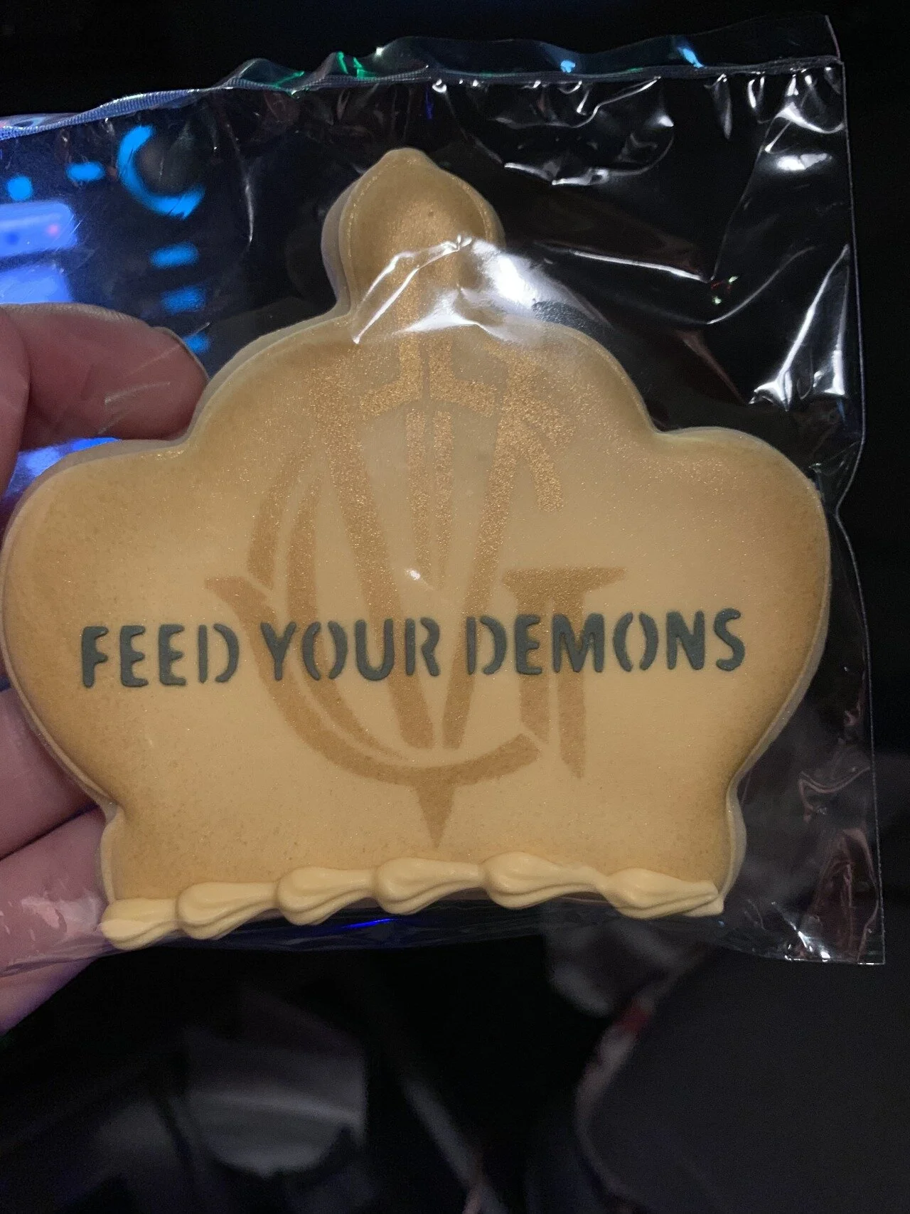 Lastly, each fan was given a cookie that said “Feed your Demons” on it-which-how incredible is that-along with a personalized note from Leigh and a map of the world from the novel to use as a little placard bookmark.